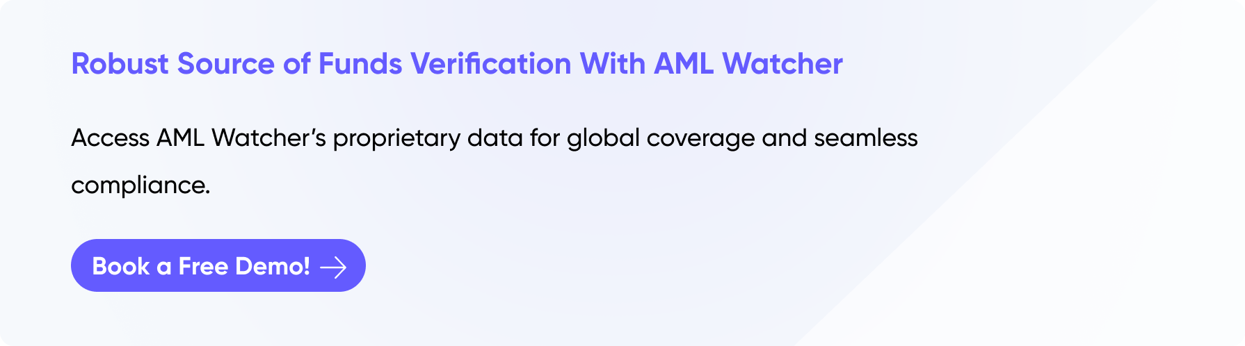 Regulated firms face growing pressure to evidence where transaction money comes from, especially when activity spans multiple jurisdictions and customer risk is higher.AML Watcher supports this work through real-time screening and monitoring across key AML risk areas. Solution is powered by a continuously refreshed proprietary data backbone and capabilities such as transaction monitoring and payments screening.