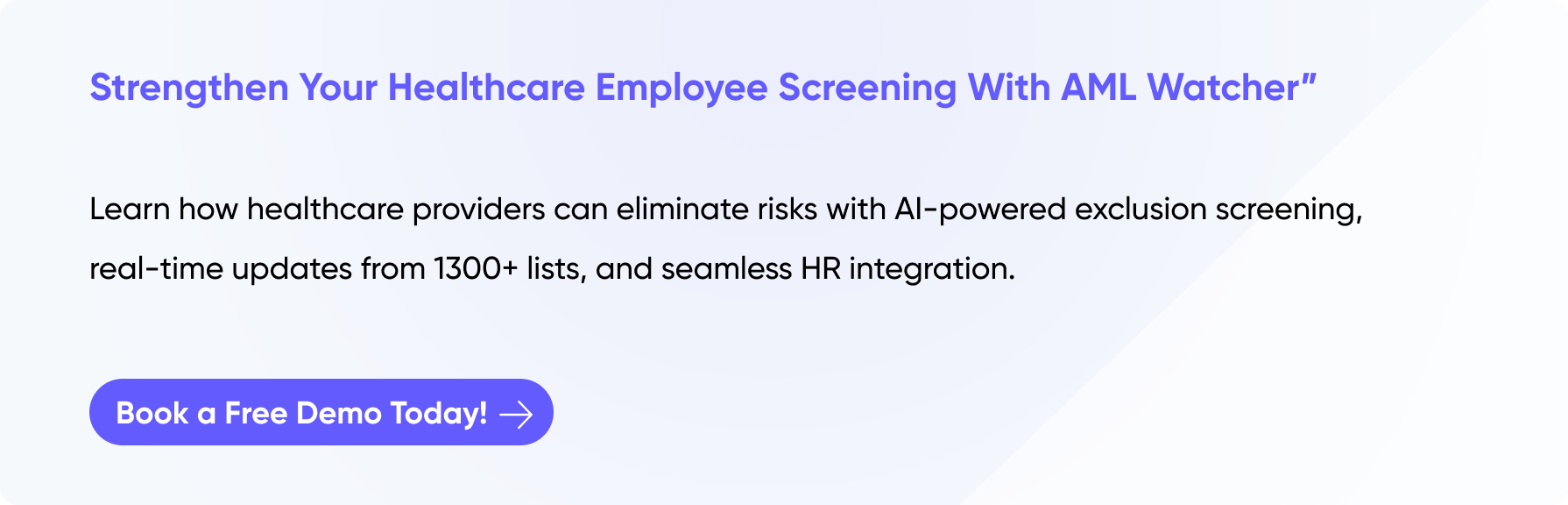 Maintaining in-house aml screening with dedicated credentialing teams and manual list updates is expensive. Healthcare companies at small scales usually have limited budgets or staffing, yet face the same regulatory oversight as large-scale medicare organizations. Without automated screening, even mid-sized hospitals risk hiring restricted staff.